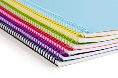 Espiral: é a mais conhecida e utilizada, pode ser utilizada até 500 folhas, podendo ter além de capas impressas, sobre-capas e divisórias.